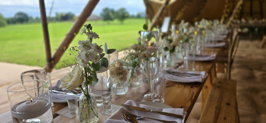 - How to Choose the Perfect Colour Palette for Your Outdoor or Tipi WeddingOne of the best things about planning an outdoor or tipi wedding is that nature already gives you a beautiful backdrop. Whether it’s rolling fields in Staffordshire, gardens in Cheshire, or our giant tipi set against the countryside, your setting is full of character before you’ve even chosen a single flower. That’s why your colour palette doesn’t need to do all the heavy lifting — it simply needs to enhance what’s already there.